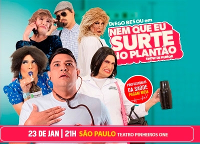 Sinopse: O maior show de humor da área da saúde está de cara nova! Nem que eu surte no plantão, o novo espetáculo do enfermeiro e humorista Diego Besou, promete transformar os dilemas da vida moderna, especialmente os vividos nos bastidores dos plantões em uma comédia hilária e cheia de identificação. Com seu humor ácido e uma abordagem irreverente, Diego expõe as dificuldades de ser um profissional da saúde nos dias atuais, mostrando os desafios diários para manter a sanidade em meio ao caos dos plantões. Ele transforma o cotidiano da enfermagem, e de toda a área da saúde em cenas engraçadas, absurdas e, ao mesmo tempo, incrivelmente familiares para quem vive (ou já viveu) essa realidade. Entre surtos, e uma equipe multidisciplinar nada orientada, as risadas são garantidas. Nem que eu surte no plantão chega para provar que, quando tudo desanda, rir é o melhor remédio.