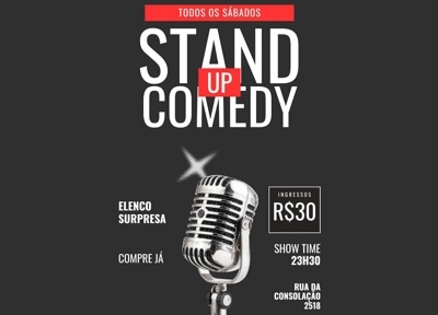 O sábado é com Comédia Onze e Meia no Acústico Comedy, em plena Rua da Consolação!