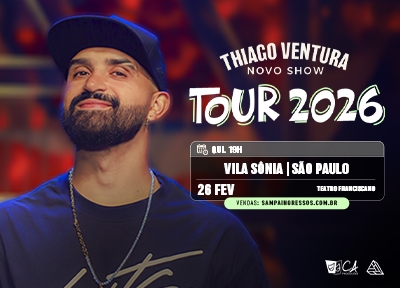 Sinopse: Thiago Ventura estreia "Lado a Lado" em 2026, seu novo solo de comédia que mergulha com humor e sensibilidade nas relações que moldam quem somos. No palco, Ventura fala sobre amizades, família e as companhias que escolhemos (ou que a vida coloca no nosso caminho), sempre com seu estilo único, cheio de histórias reais, situações absurdas e aquele olhar afiado sobre o cotidiano. "Lado a Lado" é um show de stand-up comedy sobre vínculos, lealdade, convivência e a bagunça maravilhosa de dividir a vida com outras pessoas. Um show para rir, se identificar e lembrar que ninguém caminha sozinho.
