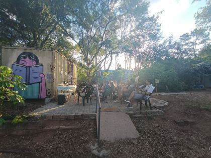 A Biblioteca Comunitária Vento Leste também se destaca por receber convidados de diferentes regiões do Brasil, ampliando o alcance da poesia para além dos limites da cidade e fortalecendo a circulação de vozes diversas no território. Esse intercâmbio também se desdobra no audiobook Sarau do Livro Inteiro, disponível no Spotify, projeto que registra em áudio os saraus realizados na biblioteca. A cada edição, um autor convidado conduz a leitura de uma obra, criando um acervo sonoro que amplia o acesso à poesia e preserva as experiências literárias vividas no espaço.