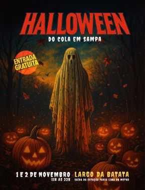 O 1º Halloween do Cola em Sampa é uma celebração do imaginário sombrio e divertido que povoa o cinema, a literatura e a cultura pop americana. A partir das 11h, o público já poderá circular entre as barracas de comidas e bebidas. Às 15h começam as atividades temáticas, com pinturas e maquiagens horripilantes. Já às 17h, o clima esquenta, ou melhor, arrepia, com a aparição de zumbis, monstros, palhaços sinistros e bruxas, que vão circular entre o público, transformando o espaço em um verdadeiro cenário de filme de terror.